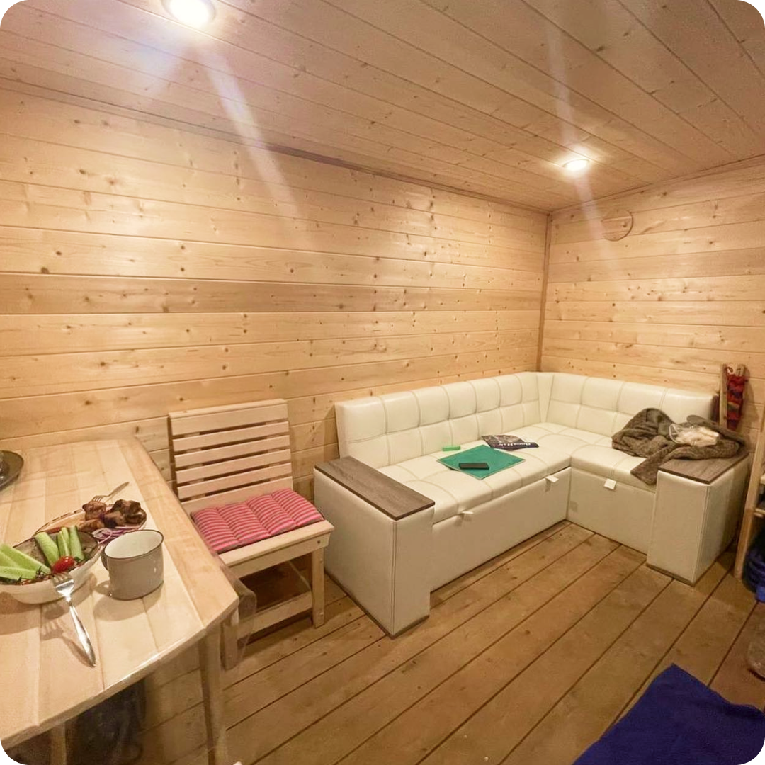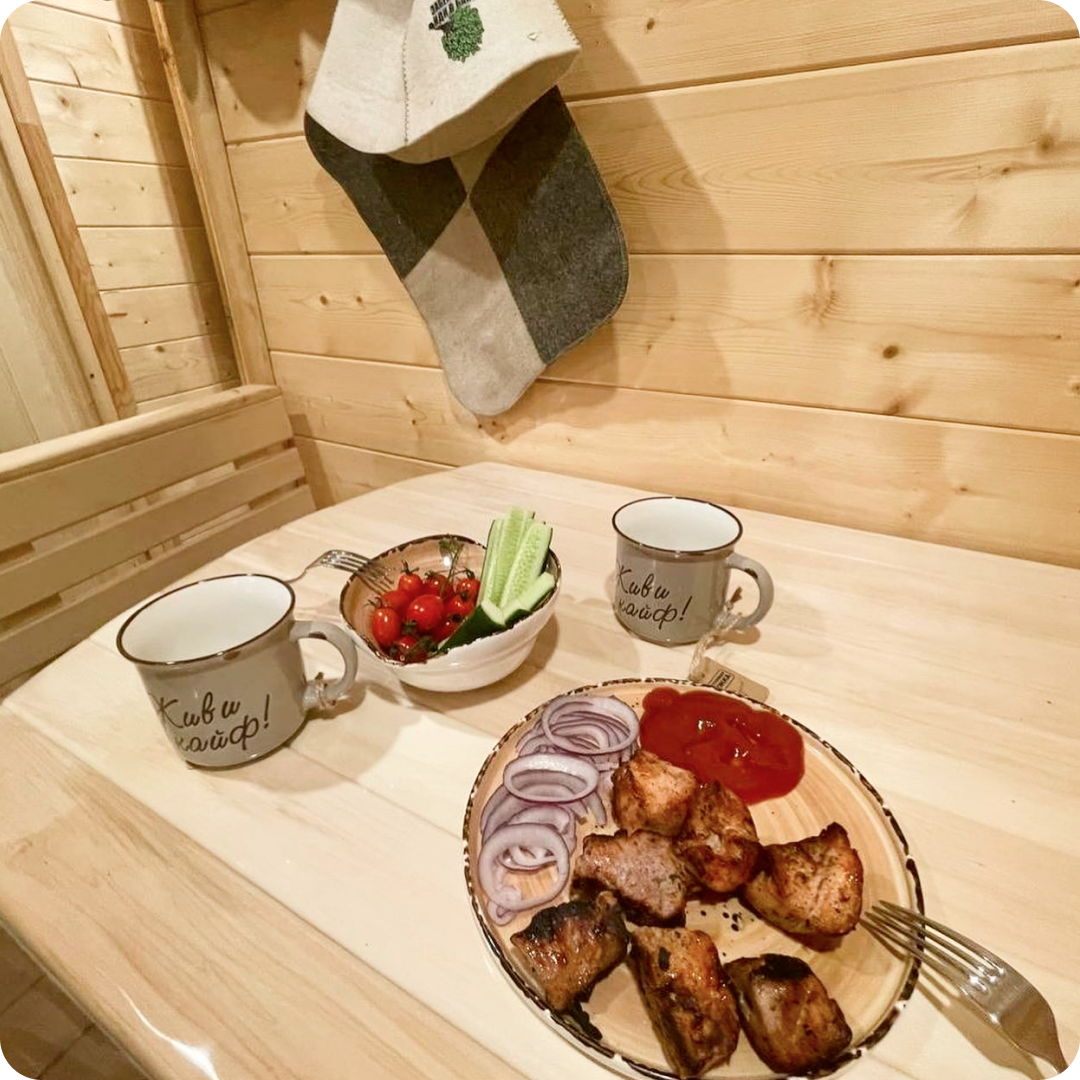 Баня с кедровой парилкой, которой мы можете пользоваться 24 часа.