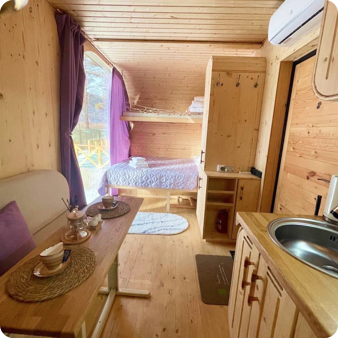 В глэмпинге есть все необходимо для комфортного проживания. Вы привозите с собой только продукты и хорошее настроение!